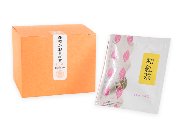 藤枝市の希少品種藤枝かおり(品種名藤かおり)の紅茶です。渋みが少なく、すっきりとした甘い味わいが特徴です。